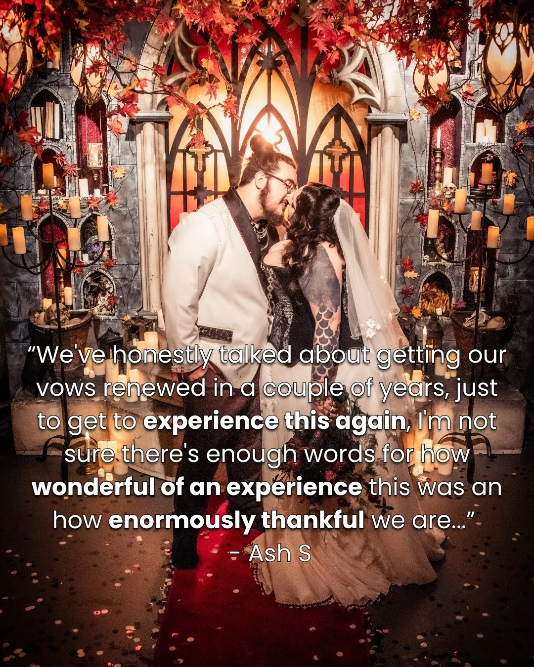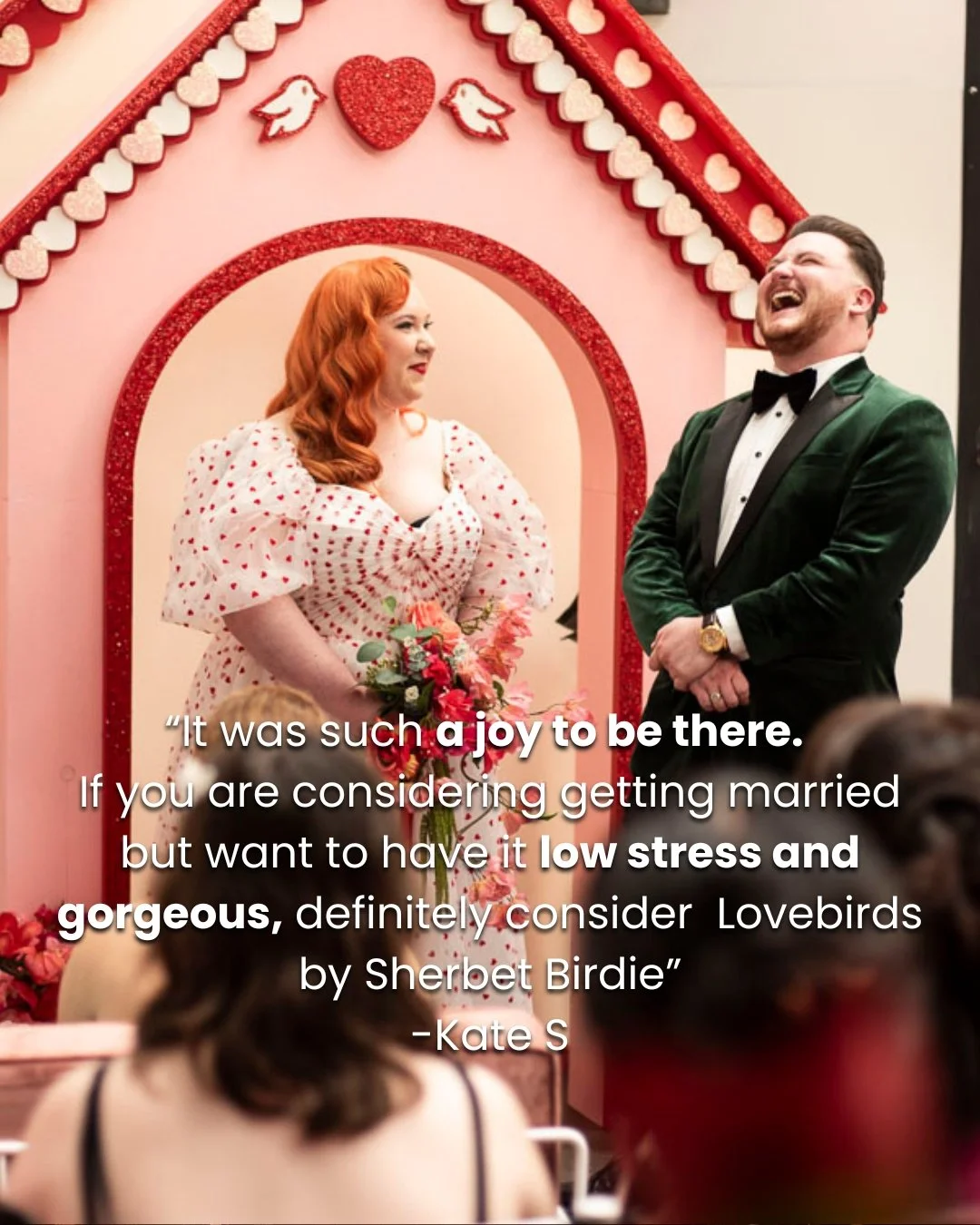 Whether you’re dreaming of a fun pop-up ceremony in our retro Love Chapel, an intimate and elegant elopement in our Botanic Romance Floral Set, or a Gothic Castle for a dark and witchy alternative wedding - Lovebirds is a space to celebrate in your own unique way!